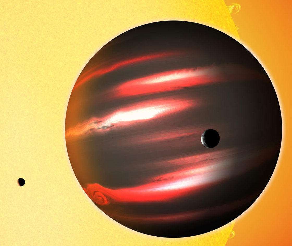 The distant exoplanet TrES-2b is darker than coal. The planet is so dark that it reflects less than 1% of the light it receives from its star. It orbits its star at a distance of just about 3 million miles (that’s 9 times closer than Mercury is to our Sun at its closest). As a result, it gets hot–a blistering 1800°F (980°C). But it refuses to give back light. Why? That’s still a bit of a mystery.