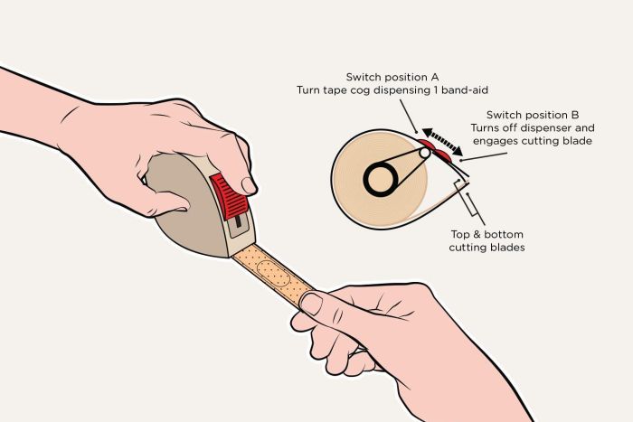 Instead of doing nothing, she decided to come up with a new, sterile system where the bandages roll out, like a high-tech sticky tape dispenser.