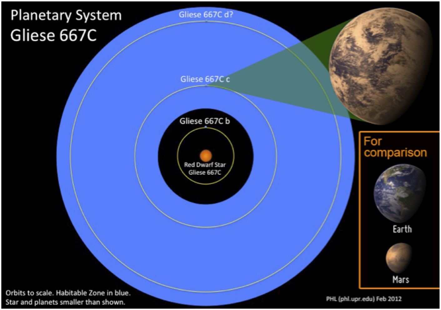 Gliese 667Cc is an extrasolar planet that’s located in the constellation Scorpius. With approximately 4.5 times the mass of the Earth, the planet is considered a “super-Earth.” By definition, a super-Earth is an extrasolar planet with a mass higher than Earth’s, but substantially below the mass of the Solar System’s gas giants (meaning that the title, super-Earth, says nothing about what the surface of the planet is actually like, or whether or not habitability on the planet is really a possibility). However, things look at least a little promising for Gliese 667Cc. As previously mentioned, this particular super-Earth lies within the Goldilocks region of it’s parent star (which is a Red Dwarf star), which means it could conceivably retain water in a liquid state without it freezing or evaporating.