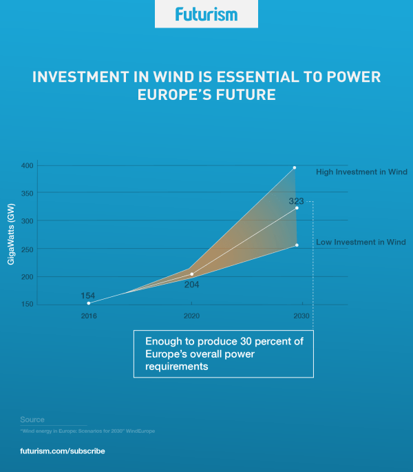 Bloomberg points out that 716,000 jobs could be created with these efforts. The wind power industry could see 351 billion euros ($417 billion) of investment by 2030.