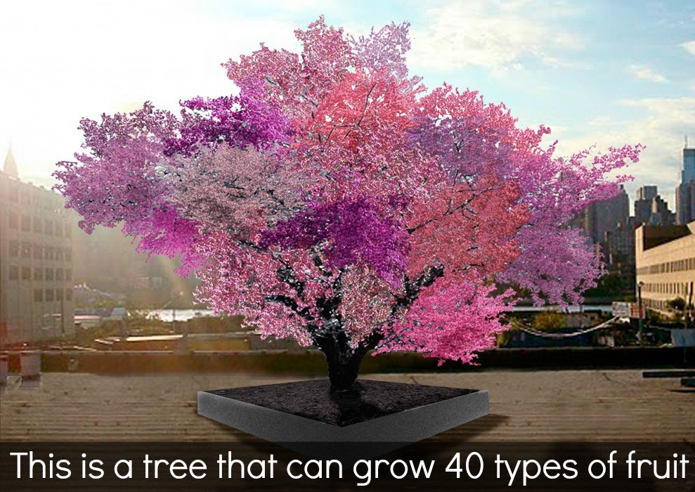 More specifically, through the work of Van Aken, who is an art professor at Syracuse University. He used a process, called grafting, to allow different varieties of trees to grow as a single tree – the way I understand it, this process isn’t unlike skin graphting or other techniques.