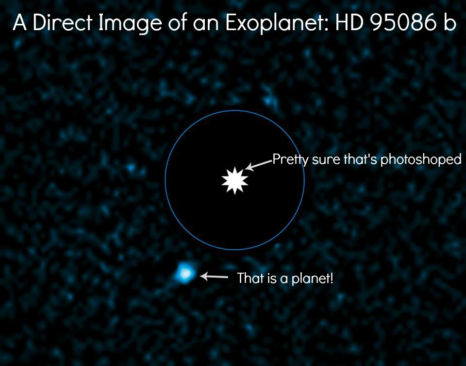 Now, more than 15 years after the first exoplanet was discovered and nine years after the first of those planets was imaged, ESO has again captured a direct image of a nearby exoplanet. This planet, christened HD 95086 b, orbits a young, sun-star, dubbed HD 95086, located about 300 light-years from Earth (in the constellation of Carina, the keel). Looking at the image, the planet is located just to the bottom left of the circle, which blots out the bulk of the starlight that obstructs our view of HD 95086 b.