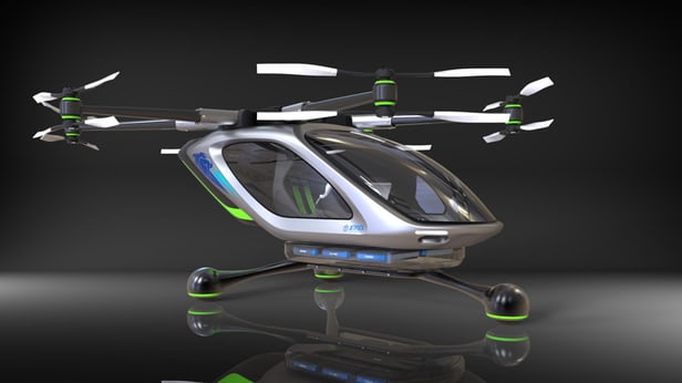 The concept vehicle would be a manned multirotor vehicle with a dozen propellers arrayed coaxially. The vehicle would be capable of speeds up to 145 km/h (90 mph) and vertical takeoff and landing (VTOL). One of the drawbacks of this technology at this point in development is how limited fly times are given the current state of battery capacity. However, as more traditional car companies go electric, the technology will catch up rapidly. According to Mayman, “…the beauty of distributed electric propulsion is that it’s very, very scalable. The way that electric motors work, it’s hey, you wanna make something for two people? OK, you just add power to the electric motors.”