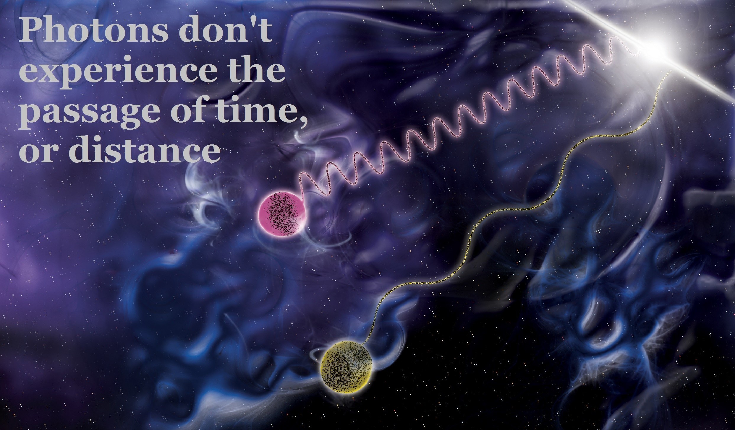 Life is much simpler for a photon, you don’t have to worry about radioactive decay or electromagnetic charge – you just fly around at the speed limit for the universe, absorbing and emitting through atoms at will. Distance? Who needs it, photons don’t have the time for that.