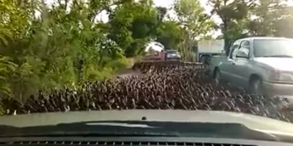 Last week, one Facebook user uploaded this (slightly horrifying) video of several thousand ducks stampeding across the road. Most estimates put the number at 100,000. However, the actual number of ducks shown in the video is unknown (if you happen to count them, be sure to get back to us with the actual figure). The video was captured in Thailand, and as you can see in the film, the flock brought traffic to an utter stand still.