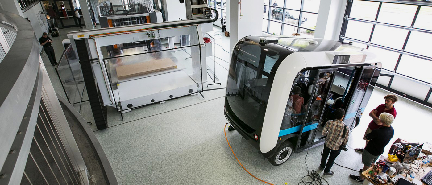 The company, unlike others that mix traditional automotive making and self-driving tech, builds the vehicles from the ground up, and produces most components with 3D printers.
