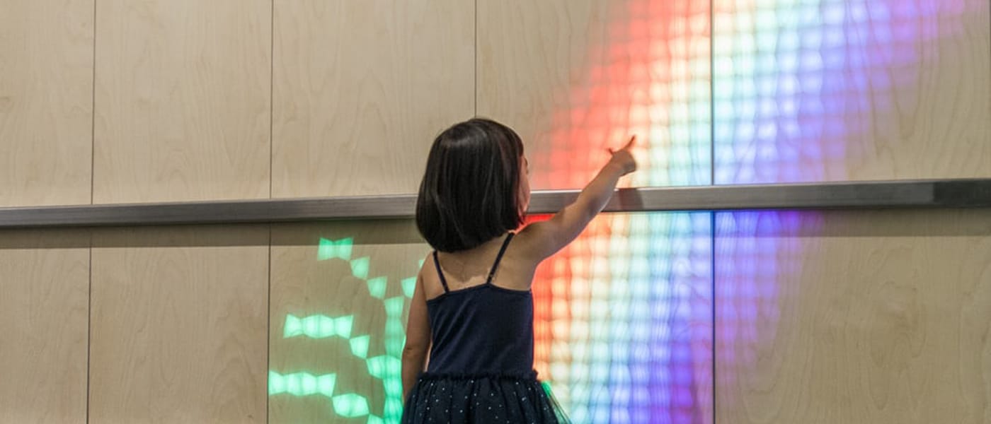 The first Lumes panel on display can be found in Austratia at the entrance of the Cabrini Hospital’s Pediatrics Ward in Malvern, Victoria. The kid-friendly animations on display there include animals peering from behind grass, falling raindrops, and runners that follow the movements of the humans in front of them.