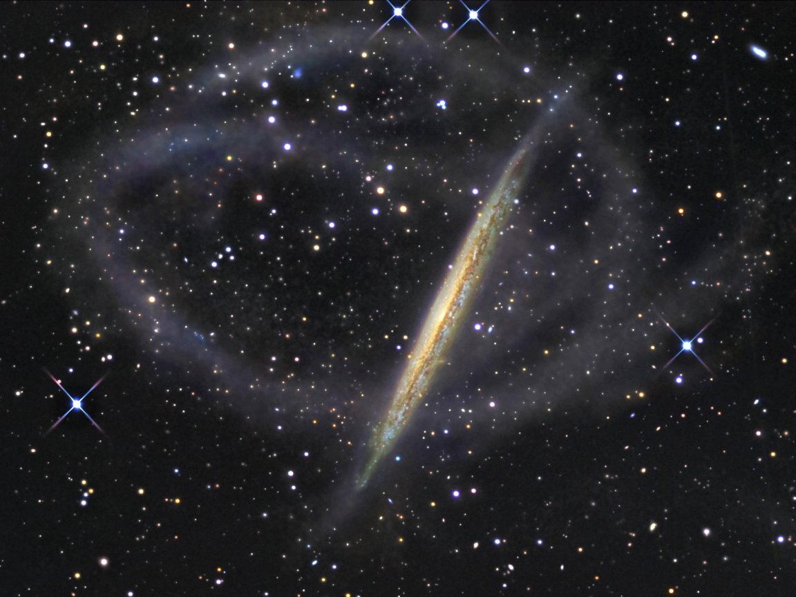 Witness the colossal “Dragon Clash” that formed NGC 5907, a galaxy that lies some 40 million light-years from Earth, towards the constellation Draco.