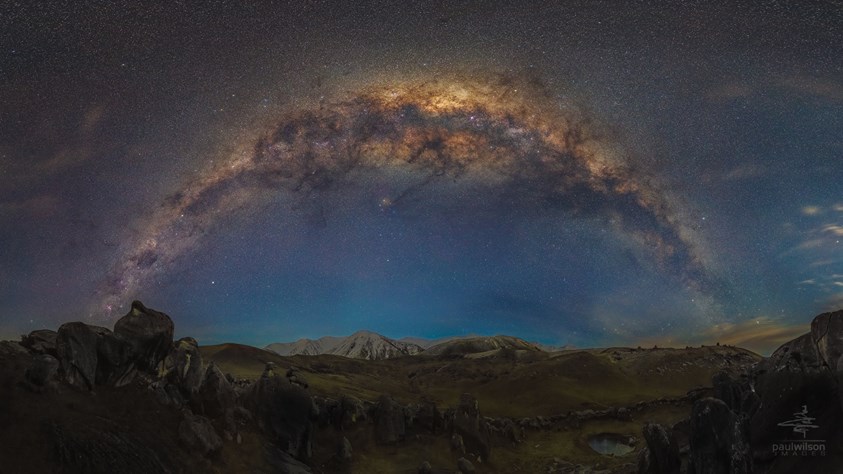 Shot at Castle Hill, New Zealand- Middle is West, South is to the left, North is to the Right.