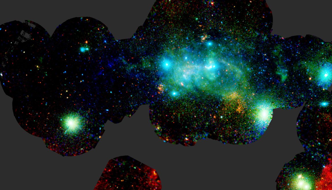 Most of the action is occurring at the centre, where diffuse clouds of gas are being carved by powerful winds blown by young stars, as well as by supernovas, the explosive demise of massive stars.