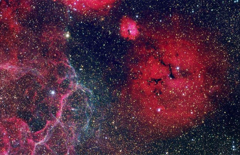 This stunning image glimpses the Gum nebula, Gum 14 and Gum 15, more specifically, two nebulae found around 3,000 light-years from Earth in the Vela constellation. From a previous write up,