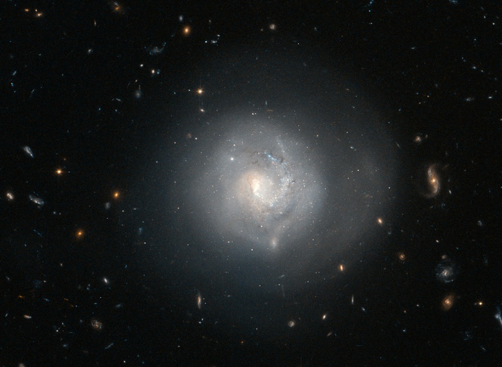 A new image from the Hubble Space Telescope provides the clearest view yet of a distant galaxy, which is surrounded by small galaxies even more distant than itself. Called Markarian 820 (or Mrk 820), it can be found 300 million light-years from Earth toward the constellation of Bootes.