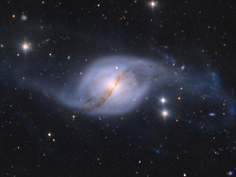The galaxy in question is located more than 400 million light-years away, in the constellation of Ursa Major. NGC 3718, as its called, got its unique shape through gravitational interactions between the galaxy and a neighboring galaxy, NGC 3718, and the two are separated by a mere distance of 150,000 light years (whereas our closest celestial neighbor is more than 2,500,000 light-years away).