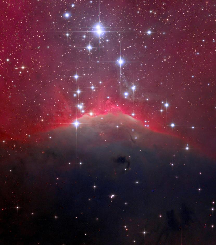 Meet Sh 2-140, a beautiful H ii region that lies on the southeast edge of Lynds 2304 — a dark nebula. Also pictured nearby is the star cluster, dubbed a IC 1396 (also known as Trumpler 37), which, in turn, is situated near the edge of the Cepheus bubble (this immensely large expanding shell of interstellar materials, like gas and dust, surrounds something called the Cep OB2 association). The whole lot, including the famous Elephant’s Trunk nebula, can be found about 3,000 light-years from Earth in the constellation of Cepheus.