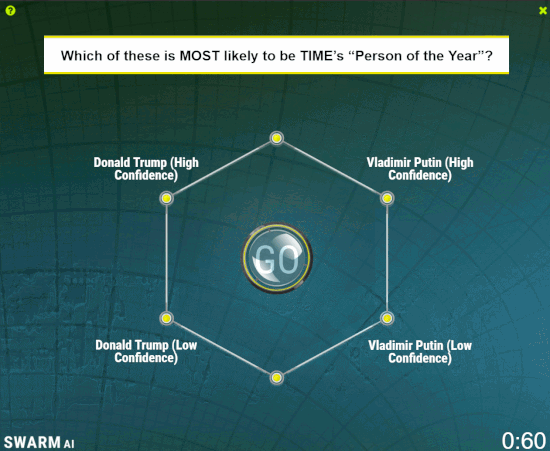 The potential for the AI goes beyond Person of the Year predictions. “Swarm AI technology can also be used to enable groups of people to reach optimal decisions, maximizing the combined insights of the population. This could be used for business decisions, political decisions, even personal decisions,” Rosenberg said.