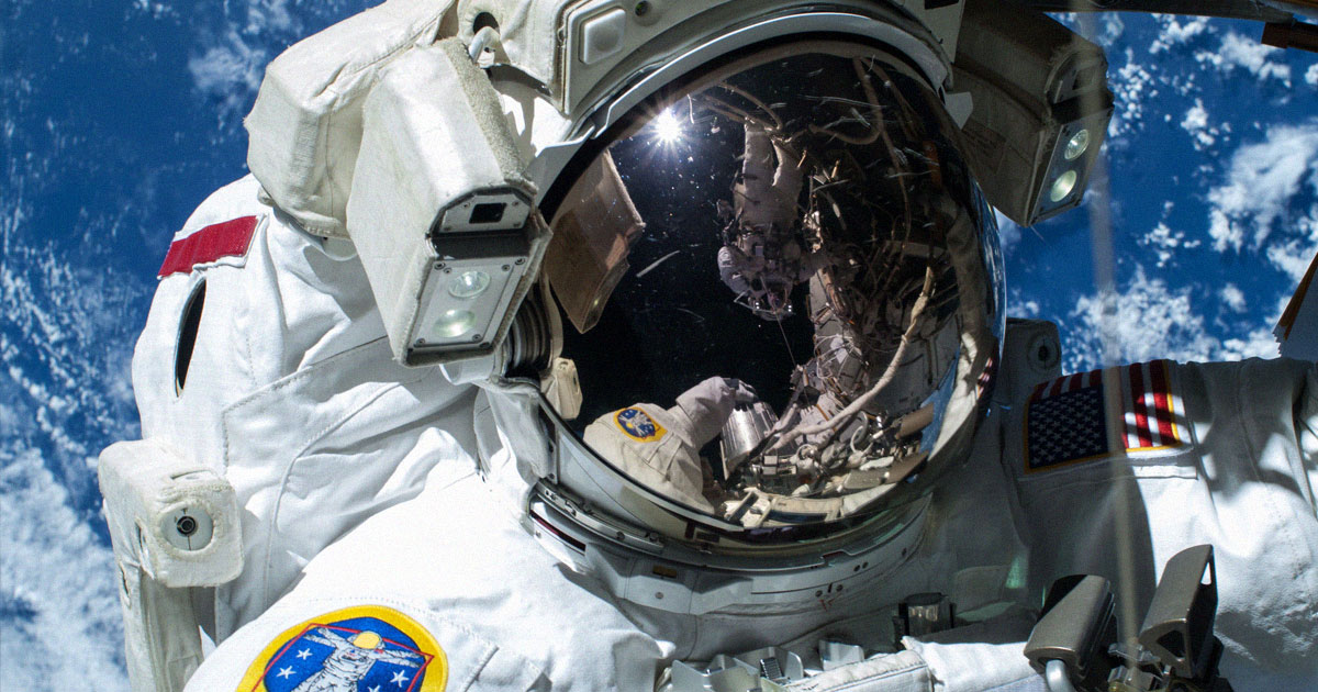Wilmore was with a fellow astronaut on the exterior of the space station when he rounded a corner and encountered a huge, reflective, out-of-use radiator that he hadn’t expected. He had just been doing his job when he was quite literally faced with himself — and the whole of space.