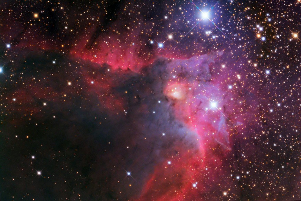 This incredible beautiful image captures one of the more complex nebulae to get a decent picture of; called SH2-155 (also known as the Caldwell 9 or the Cave Nebula).