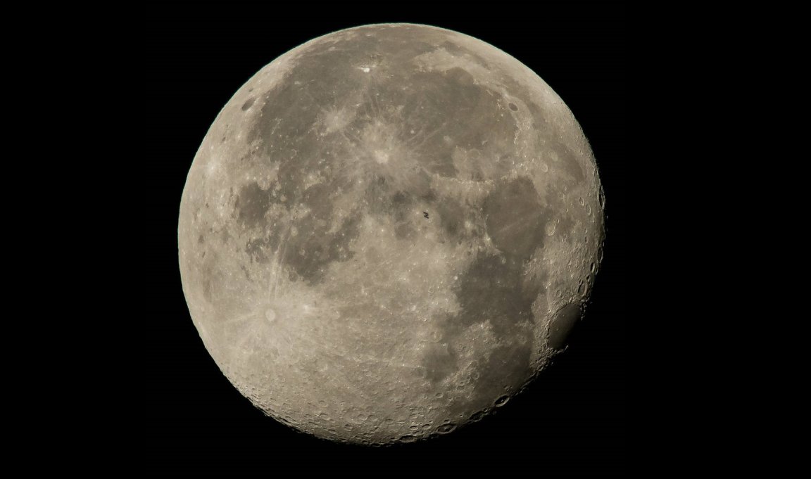 If you don’t know, a “transit” occurs when one celestial body appears to move across the face of another celestial body. Here, the ISS seems to be drifting just above the Moon; however, the Moon orbits Earth from a distance of roughly 250,000 miles (404,000 km). The ISS, on the other hand, is just a short 250 miles (400 km) away. So in reality, the two bodies are separated by hundreds of thousands of miles. They just look as though they are close together because of their relative positioning.