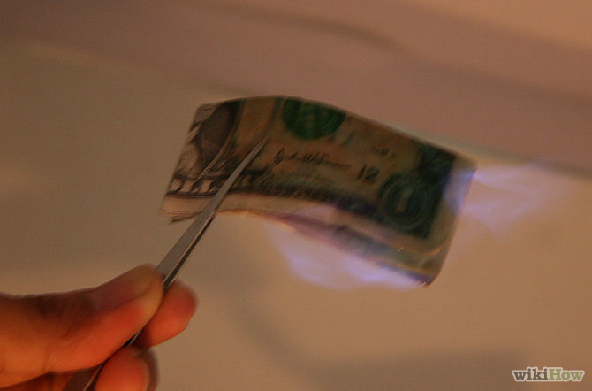 These experiments above were not very dangerous, so I think the last one should be: Let’s play with fire! Take a piece of cloth… but if we play with fire, let’s make it even more dangerous: take some money, one bill will suffice and pour rubbing alcohol on it, and don’t be cheap on the alcohol if you want your bill to survive! Before lighting it, I would suggest you taking the bill with tongs, as fire is hot. Also be careful not to burn your whole house down. So once you hold the alcohol soaked bill with tongs, you can light it and let it burn and once all the alcohol will evaporate, your bill will be left unharmed! Have fun!