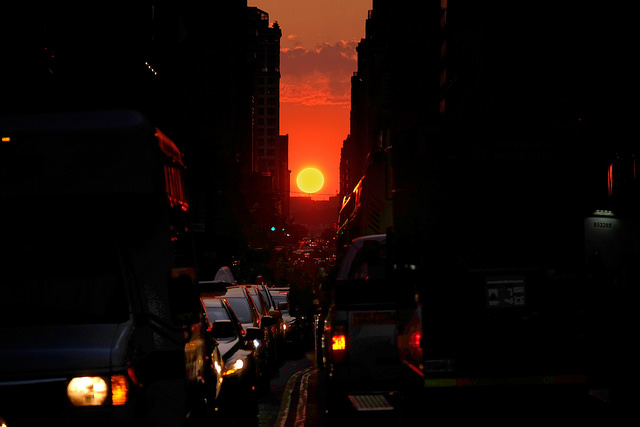 In Manhattanhenge, the sun aligns perfectly with the city’s transit grid. It is a rather amazing event—seeing the sun set along the busy streets in Manhattan. In fact, it is such a stellar event (pun intended) that thousands of people piled on to the road, hoping to record the occurrence. Of course, they mostly just recorded each other.