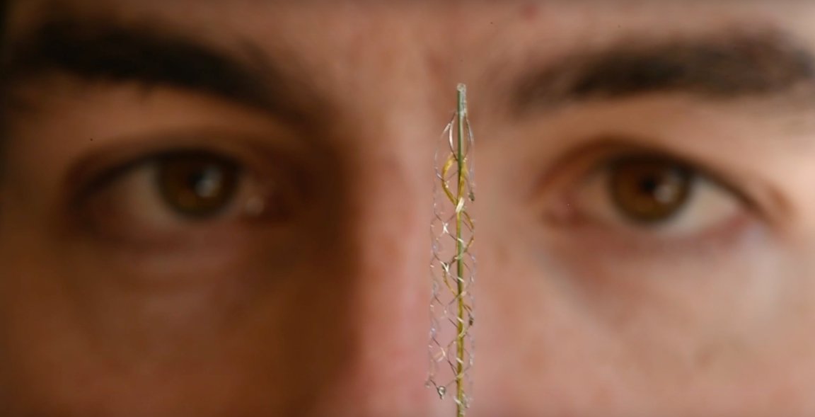In short, stents are off-the-shelf therapeutic tools used to clear and repair blood vessels. The researchers were also able to make the device flexible enough so it can safely pass through curved blood vessels, but rigid enough for the array to emerge from the delivery tube when it reaches its destination.