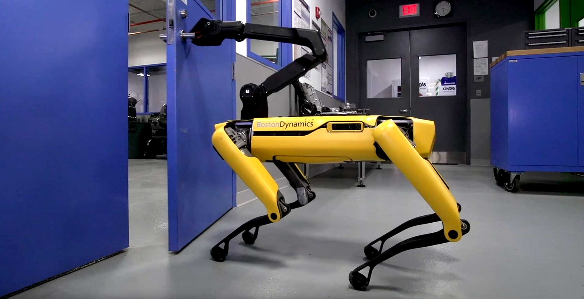 In a video released by Boston Dynamics, not only does the new-and-improved SpotMini open the door for itself, it even holds it open for its robot colleague. A portrait of professional collegiality, this is a big step up from the solo activities of washing dishes or rolling over.