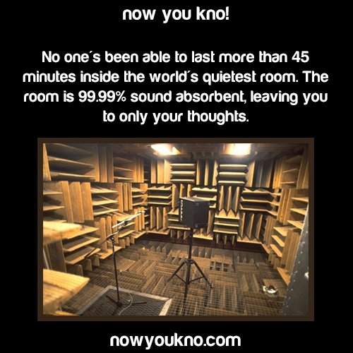 So, what would happen? Steven Orfield, the lab’s founder, states that “We challenge people to sit in the chamber in the dark – one person stayed in there for 45 minutes. When it’s quiet, ears will adapt. The quieter the room, the more things you hear. You’ll hear your heart beating, sometimes you can hear your lungs, hear your stomach gurgling loudly. In the anechoic chamber, you become the sound.”