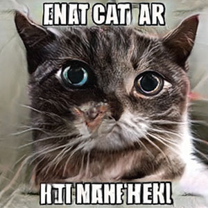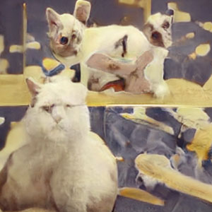 But ThisCatDoesNotExist.com is not the most compelling example of the tech. It’s more like the result of what would happen when hundreds of thousands of cat images, including text memes and their human owners’ faces, are mashed together in a a cyber-car-crash. The results are harrowing.