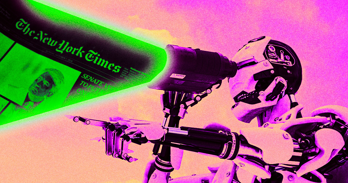 “As our terms of service and the law make clear, no one is permitted to wholesale copy Times content for commercial purposes without our permission or payment,” an NYT spokesperson told us in response to questions about this story. “For years, publishers have been contending with bad actors that reproduce their work, including DNyuz, a well-known plagiarist. It does not matter whether generative AI companies scrape our content themselves or turn to a third-party infringer in an apparent effort to engage in data laundering of our works: The bottom line is that this taking of our content without our consent is illegal.”