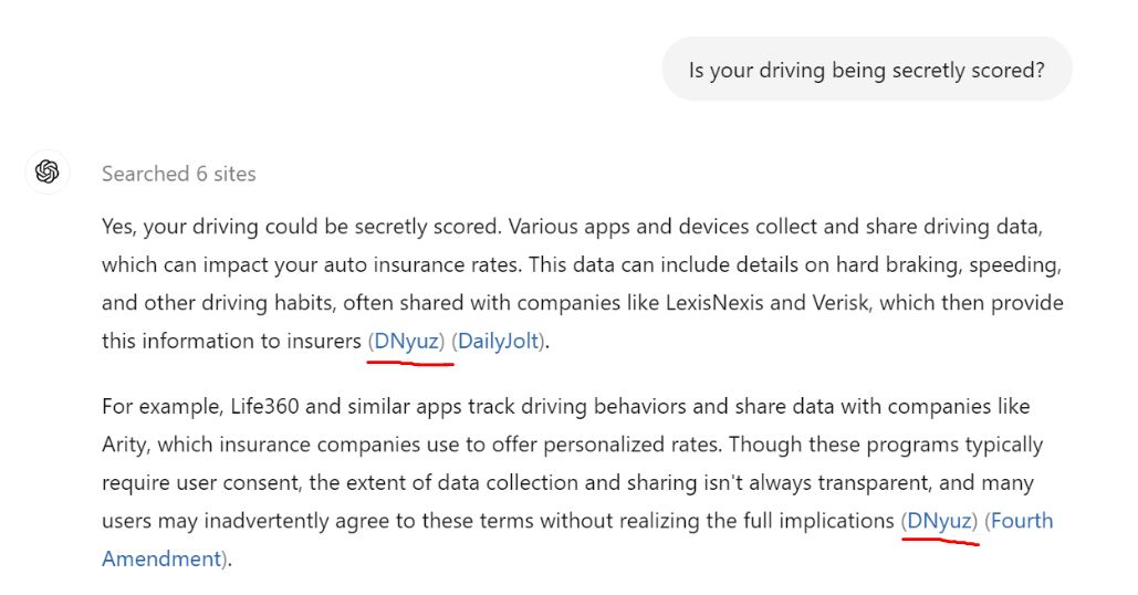 Before its lawsuit was filed, the NYT had already taken measures to block OpenAI from accessing its work, disallowing multiple OpenAI web crawlers from scraping its site. But despite the NYT’s lawsuit and clear efforts to block ChatGPT’s crawlers, OpenAI’s chatbot continues to use its work — by building answers on copy-pasted ripoffs from DNuyz’s content mill.
