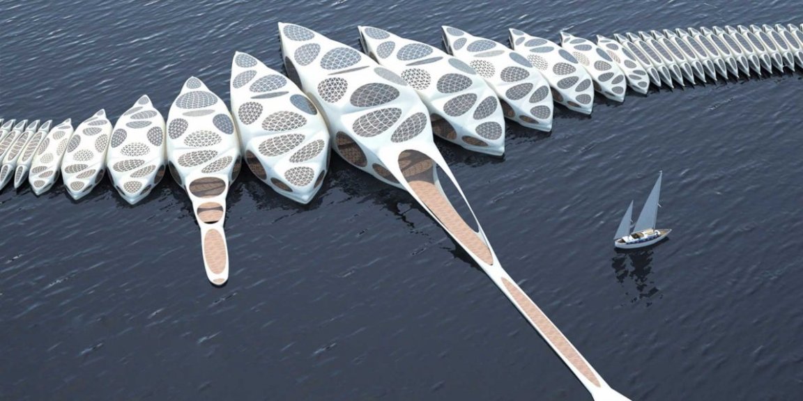 For accessibility, the structure houses a helipad and each end of the half-mile spine has a boat that can detach from the entire structure and take guests for a ride around the area. Essentially, with the flexibility of the “floatel” can even make it an alternative to cruise ships, allowing guests to easily explore new, exotic places.