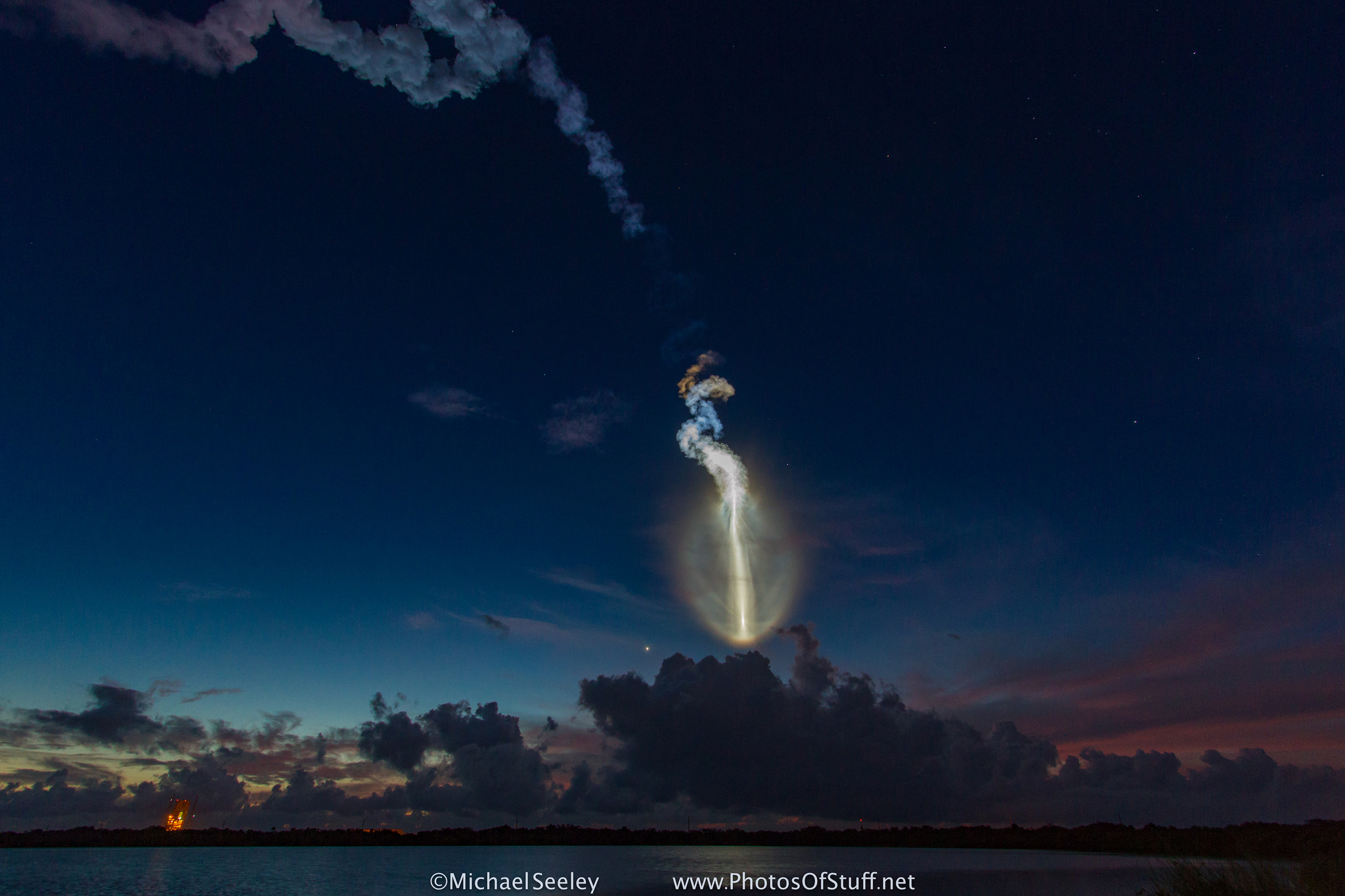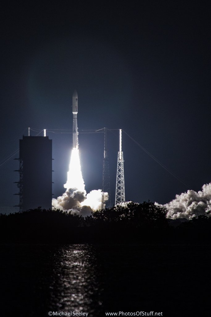 This launch, with its pretty trail, was powered by an RD AMROSS RD-180 engine. Any new contracts for RD-180 engines, which are Russian made, have been prohibited by congressional legislation in response to Russian territorial aggressions but the ULA has relies on them for their Atlas launches.