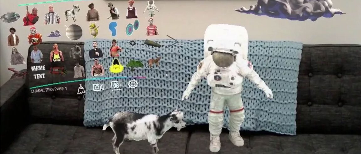 Once the app is ready, a screen comes up showing different characters that a user can input into their “mixed reality video creation.” Some of these include: