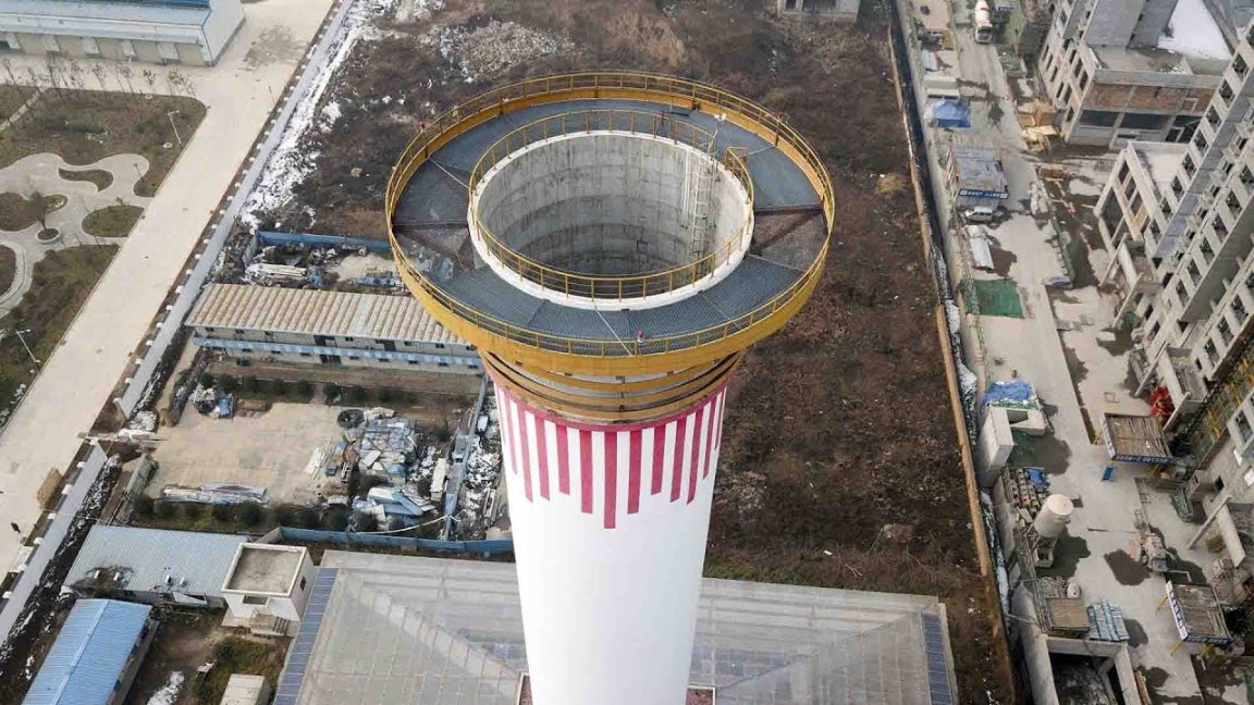 The 18.2-meter (60-foot) chimney, constructed in the city of Xian, uses sunlight to filter out noxious particles and emit clean air.