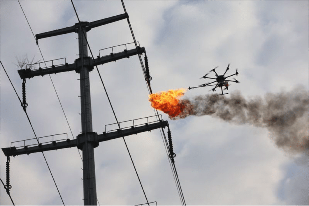 While this seems dangerous, the use of drones seems to actually be safer than the previous protocol. Before, maintenance workers would risk their lives to clean power lines, climbing upwards of 10 meters (32 feet) into the air while risking electrocution with each step. While the use of a flamethrower may require more frequent cable replacements, the metal power lines will not be harmed by the flames.