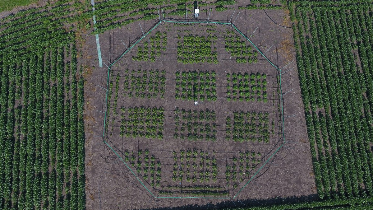 To achieve that, they devised a ring-like structure that surrounds large swathes of crops, exposing them to higher levels of carbon dioxide and ozone. The facility recreates the atmospheric compositions predicted for 2050, when carbon dioxide is expected to reach 600 parts per million (ppm), more than double the levels seen at the start of the Industrial Revolution (around 260 ppm).