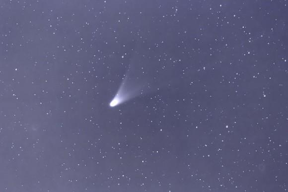 When this comet was discovered, it was 7.9 Astronomical Units from the Sun. An Astronomical Unit, or AU, is the average distance of the Earth from the Sun. 7.9 AU’s puts this comets at the distance from the Sun equal to somewhere between the orbits of Jupiter and Saturn. The comet’s orbit is very deeply inclined at 84.2° compared to the ecliptic; the plane of the Solar System. That means the comet almost comes in from directly below the Earth, and leaves directly above.