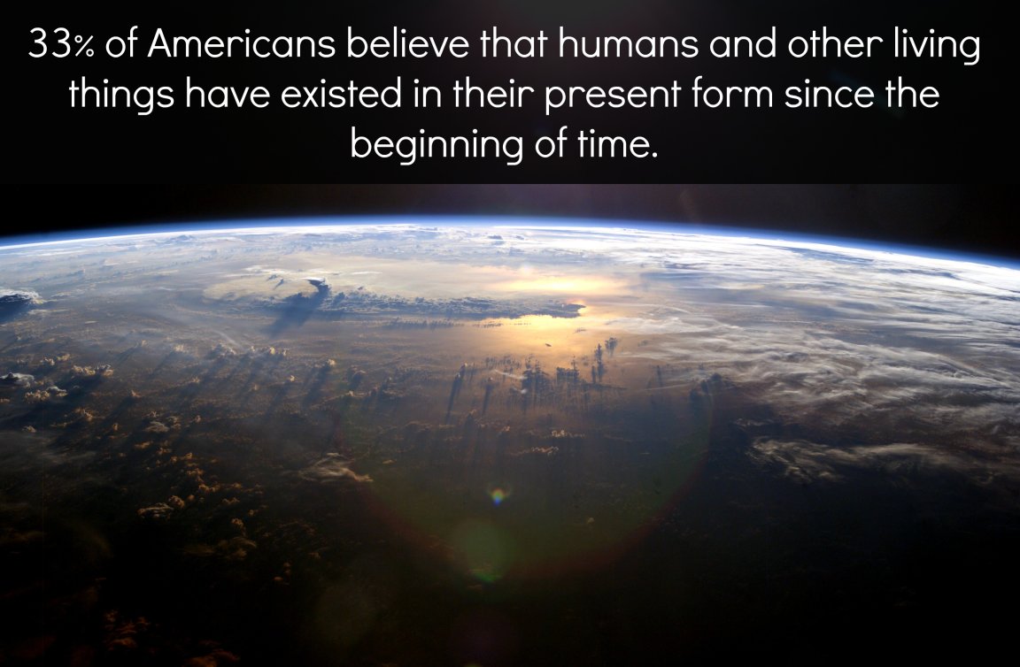 A third of Americans (33%) reject the idea of evolution, asserting that “humans and other living things have existed in their present form since the beginning of time.” These numbers are troubling, as this is a process that is accepted by 99% of experts in the field. Ultimately, this means that there is a bit of a disparity between what experts assert and the public is willing to believe. Of course, the scientific community does not operate on consensus; it operates on evidence and observation. Nonetheless, the numbers are problematic in that they say something about who the public is willing to trust (hint: it’s not their own judgement or critical evaluation of the evidence).