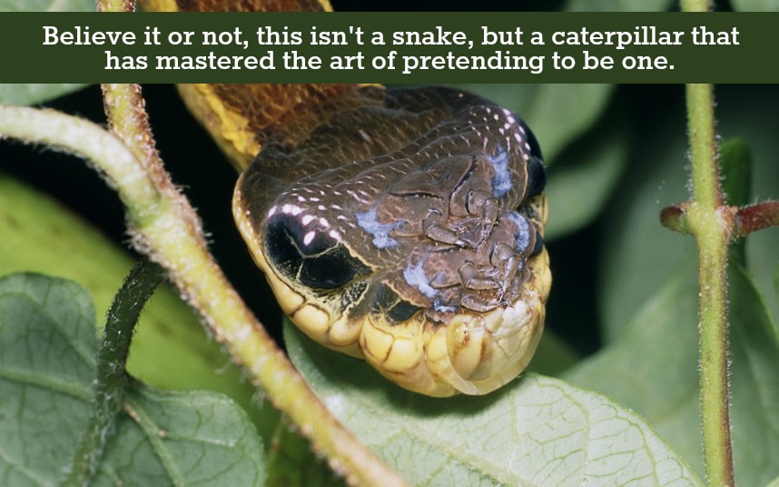 As such, various creatures have keen camouflage skills. We’ve seen shape-shifting octopi; insects that look more plant than animal; owls that perfectly blend in with trees; along with highly-poisonous fish that look indistinguishable from their surroundings. Of all of them, perhaps the most intimidating-looking is this caterpillar. Instead of mimicking innocuous things like tree branches, seaweed or moss; it masquerades as one of nature’s most feared predators; the snake.