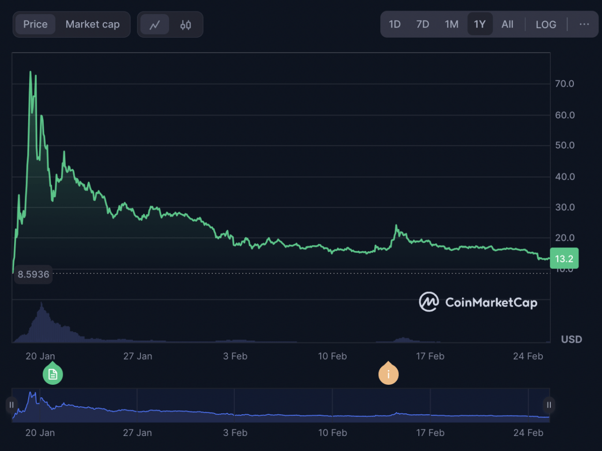 Launched in January just ahead of the president’s second inauguration, $TRUMP has already seen an absolutely outrageous fall-off.