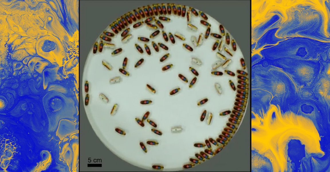 Researchers put a whole bunch of tiny, pill-shaped toy robots in a circular pen and let them mindlessly zip around. The resulting behavior, which looked somewhat organized, could give scientists insight into how microbes like bacteria move around. It could also give rise to better swarm robotics of little (smaller than the toys used in this study, for sure) pill-bots that can move around inside of an organism, perhaps to deliver a medication.