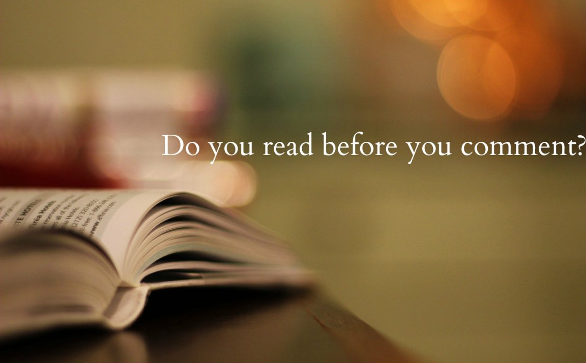 And questioning is, for the most part, a good thing. Everyone should have a healthy amount of skepticism. But is it considered “healthy skepticism” if you respond to an argument or idea without actually reading what the other person said? Can you join a conversation without reading all of the comments that preceded your entrance into the dialog? Such questions might seem like tangential philosophy; however, these are concerns that must be addressed as the technological age continues to progress and develop.
