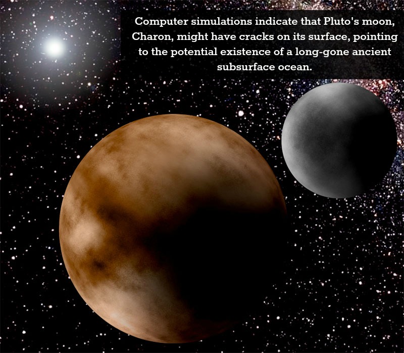 In such a scenario, the constant gravitational interruptions both Charon and Pluto’s s face (and it’s other moons, to a smaller degree) create enough friction to stir their interior and shake up their surface features, leaving cracks behind as a visual reminder of the nature of gravity. Tidal stresses aren’t the only factor to consider either though, its orbit might also a large role, as the eccentricity of its orbit could result in the strengthening of the tidal stresses.