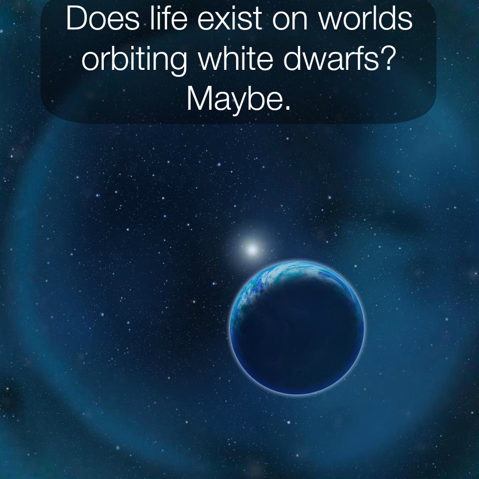 Well, let us look into Earth’s future. When the Sun eventually dies, it’ll shed its outer layers and transition into a white dwarf. This is essentially the hot remains of a medium-sized star. Nuclear fusion has stopped, but the residual heat still has life-sustaining abilities. Orbiting from a distance of only a million miles (in contrast to Earth’s current 93-million mile location) a planet would be within the (now only earth-sized) white dwarfs habitable zone, zipping around the star every ten hours.