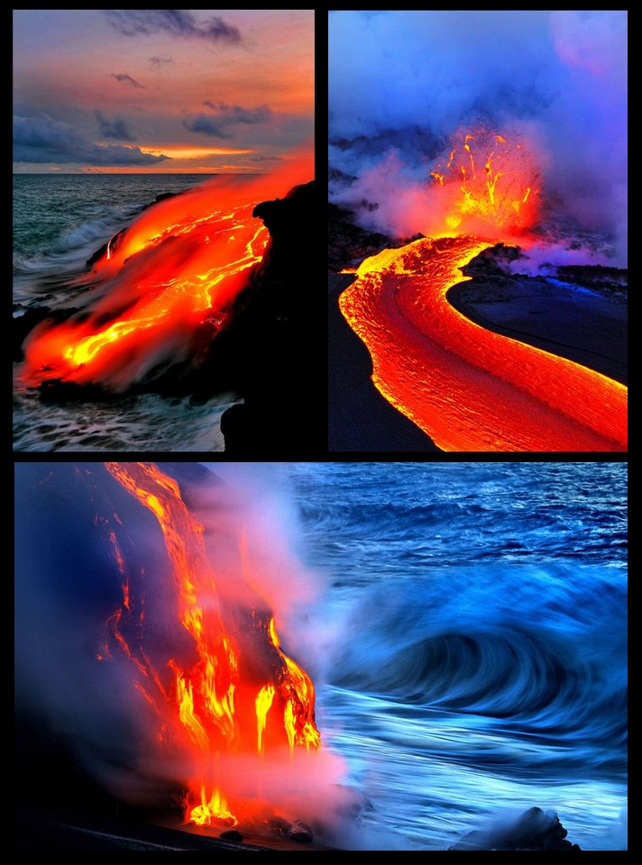 In a classical example of how imminent destruction in nature can sometimes invoke pure beauty, photographers Nick Selway and CJ Kale braved the harsh waves to capture the perfect moment that lava meets water in Kalpana, Hawaii.