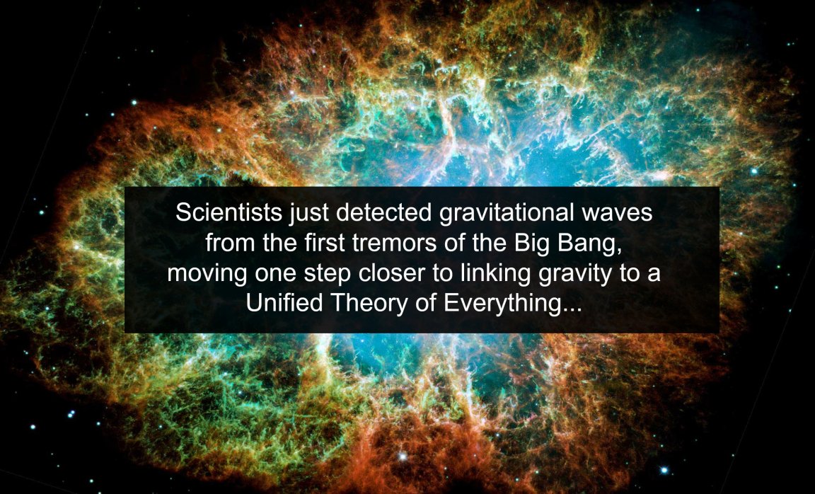 Since the scientists were able to link the gravitational waves with an epoch in the early universe in which quantum effects were exceedingly dominant, we have moved one step closer linking the fourth force – gravity itself – into a Theory of Everything. However, Kamionkowski, asserts that he is “trying to maintain a sober caution, because extraordinary results really do require extraordinary scrutiny, and the results that were announced have yet to be vetted by the outside community.”