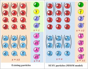 The basic idea of super-symmetry (SUSY) is that for every particle so far discovered, there is also a super-partner with a spin difference of half an integer. This spin difference means that for every boson (which has integer value spin) there exists a super-partner which is a fermion (which has non-integer value spin). For example, SUSY predicts a super-partner for the photon called a photino with a spin: ½, and a super-partner for the gluon known as a gluino.