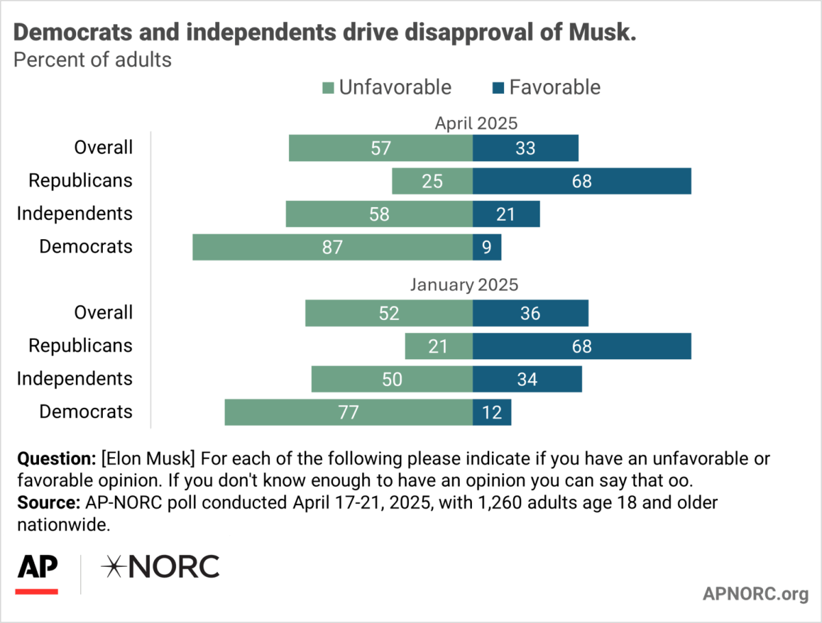 A new Associated Press-backed poll has shown that billionaire Elon Musk’s popularity is declining rapidly.