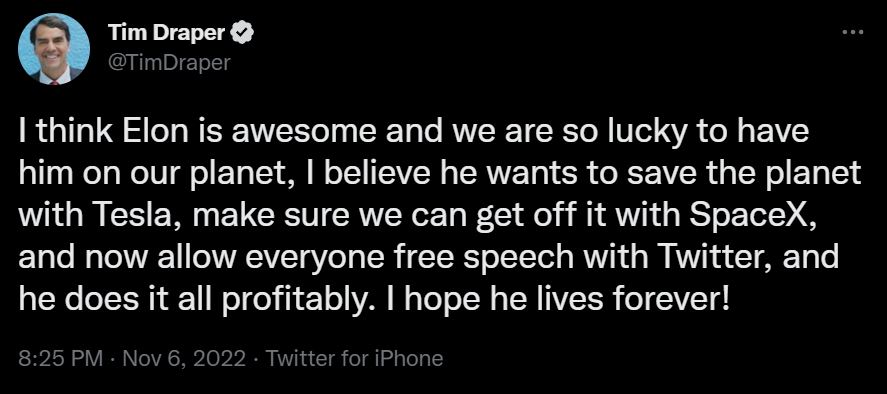 Take, for example, venture capitalist Tim Draper’s Musk-liked tweet about the world’s richest man, which might be one of the thirstiest public displays of affection that we have simply ever seen.
