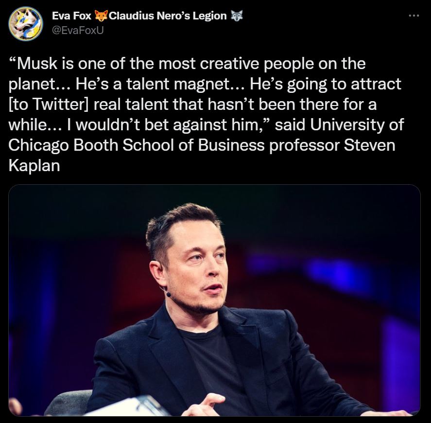 In between a few sparse Twitter-unrelated memes and the occasional not-quite-porn-but-porn-adjacent fantasy art, Musk’s favs are pretty much all self-validating fan tweets about his Twitter takeover, lauding the controversial figure as a genius who’s always a few steps ahead while shaming those who oppose him.